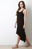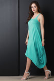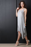This maxi dress features soft jersey knit, scoop neckline, sleeveless construction, and handkerchief hemline. Accessories sold separately. Made in U.S.A. 96% Rayon, 4% Spandex.