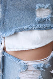 These edgy boyfriend style shorts feature faded denim, distressed and torn design, five functional pockets, five belt loops, and zipper fly with button closure. Accessories sold separately. 100% Cotton.