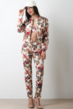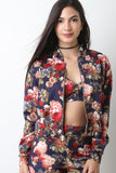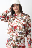 This matching floral print throughout, banded long sleeves, round neck, and front zip-up closure. Accessories sold separately. Made in U.S.A. 95% Polyester, 5% Spandex.